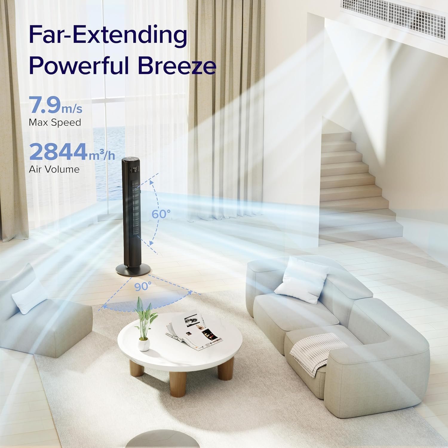 【Versatile & High Fan Speed】Elevate your comfort with 12 speeds, 4 modes, and a Maximum Speed of 7.9m/s. Take your cooling experience to the next level and seamlessly integrate this cutting-edge technology into your home!