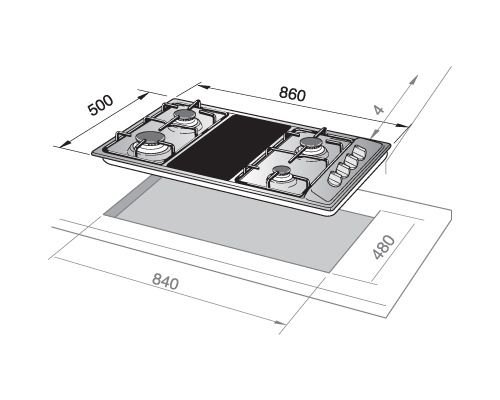 - Hob Built-In 5 Gas Steel 90CM.