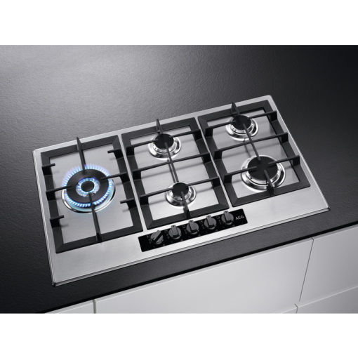 The design of the Speed Burners in this AEG gas hob allows for the flames to directly target the bottom of the pan, providing quicker heat and greater efficiency. These high-speed burners get you cooking up to 20% faster.