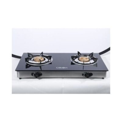 Clikon Gas Stove (glass top) features a set of two brass burners.