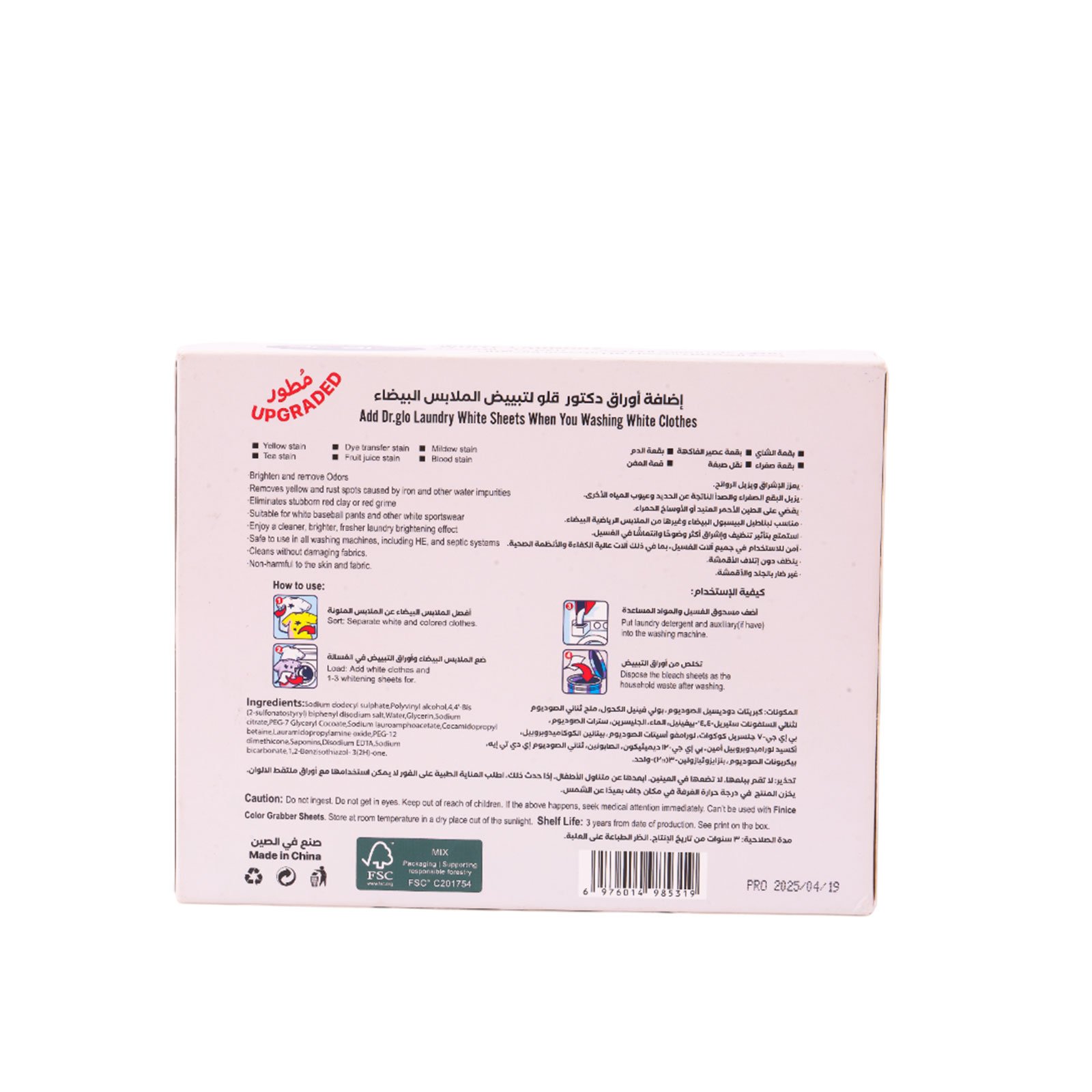Usage: Gentle whitening for laundry, free from harsh and harmful ingredients.
