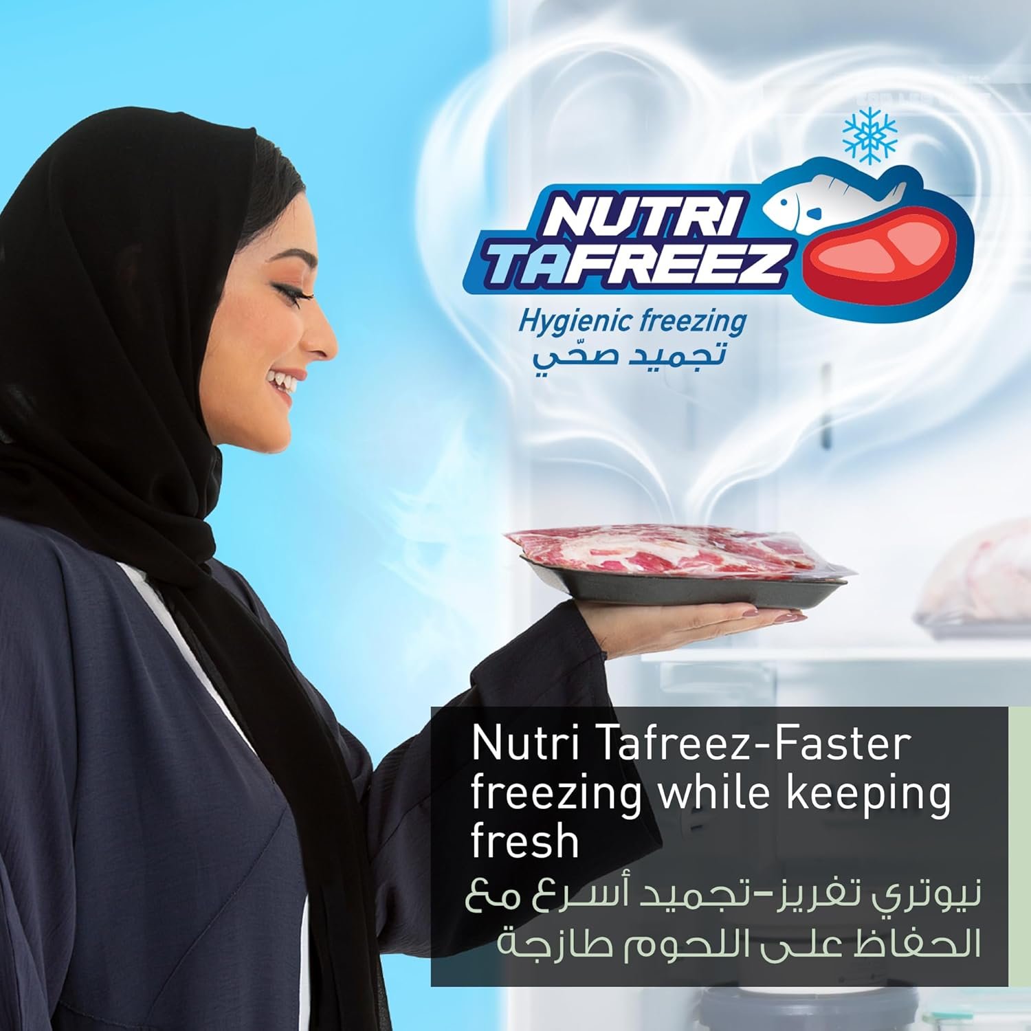 - Nutri Tafreez technology freezes meat faster in order to suppress the growth of bacteria and retain meat’s nutritive qualities. This Super Freeze feature preserves meat hygienically. ◦ Retains nutrition and helps efficient long preservation ◦ Suppresses growth of any bacteria ◦ Depletes odor along preservation of item