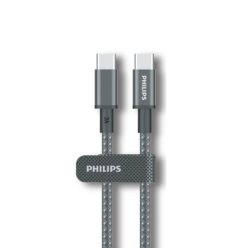 Philips DLC5030C/00 USB-C to USB-C Cable, 1 m, Max 60 W,Sync and Charge,Black braided cable,Supports USB 2.0 high-speed 480 Mbps data transfer rate.